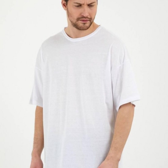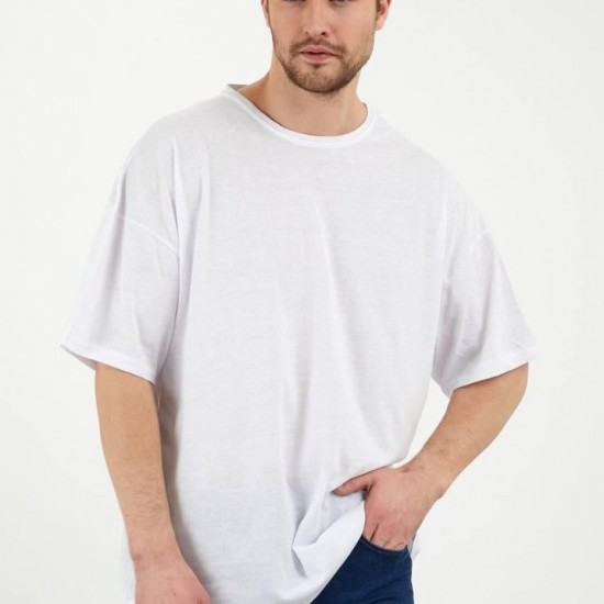 Erkek Oversize Kalıp Beyaz Renk %100 Pamuklu T-Shirt