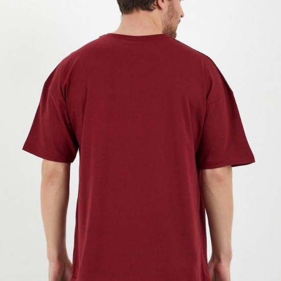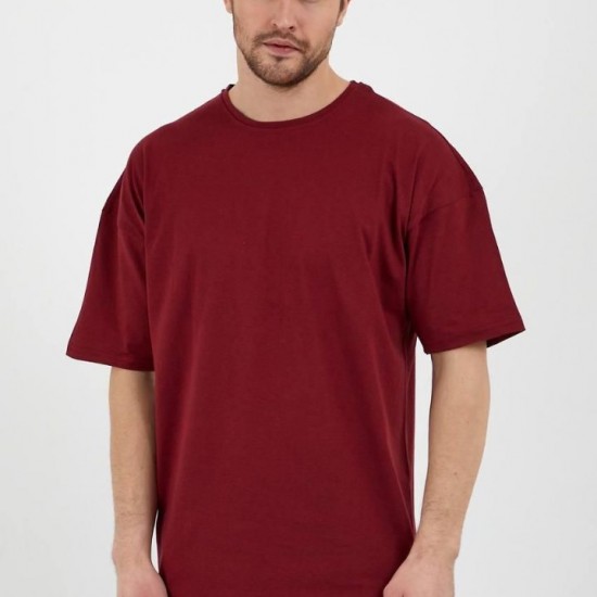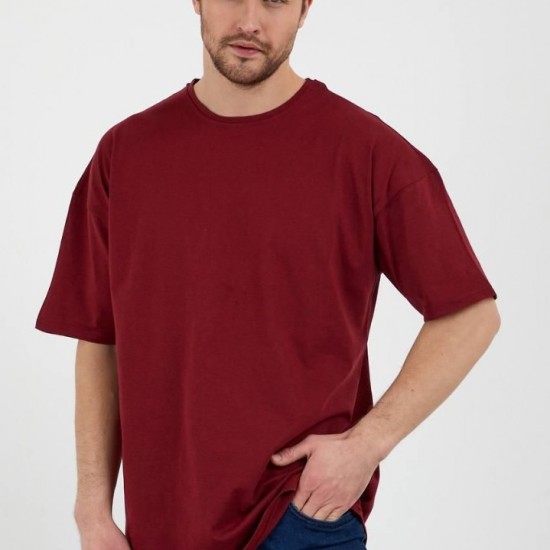 Erkek Oversize Kalıp Bordo Renk %100 Pamuklu T-Shirt